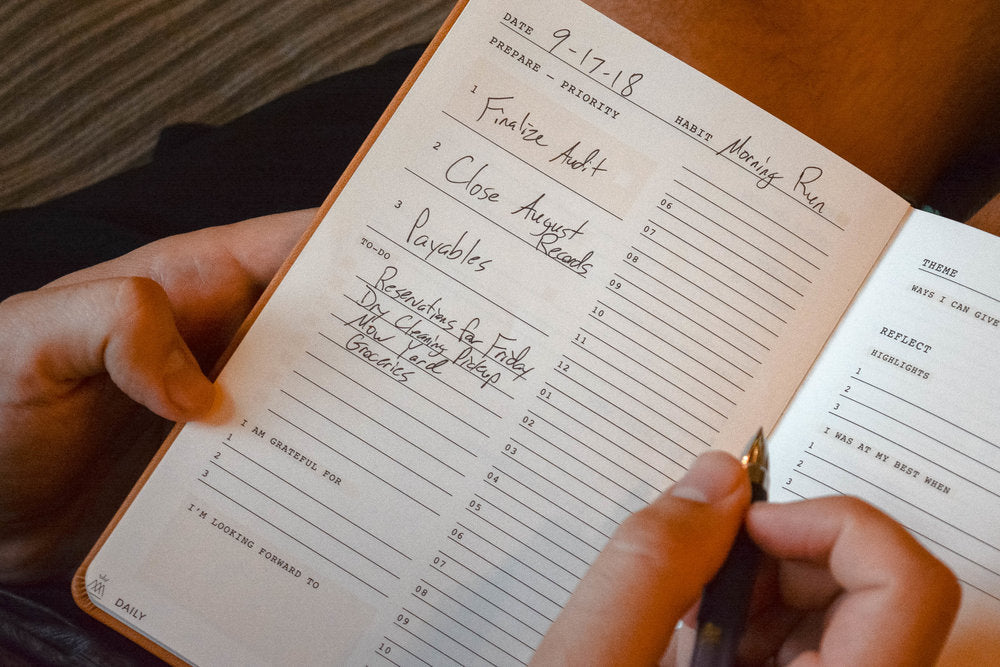 The Monk Manual 90-Day Planner is a daily system that helps you focus on the most important things, so you can live each moment with greater purpose, productivity, and presence (we guarantee it). Inspired by Monks. Backed by Science. Designed for you.