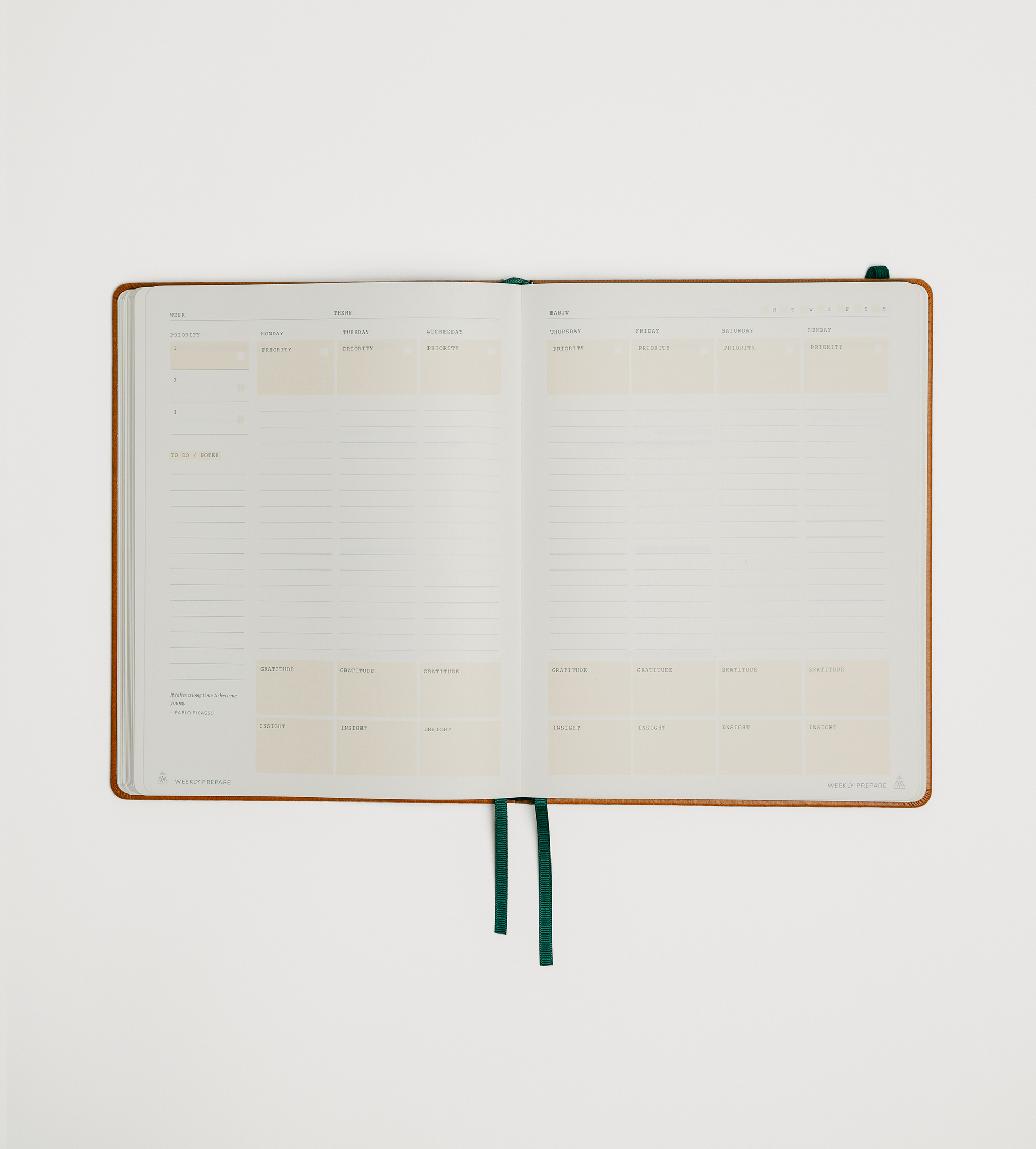 Meet the new Monk Manual Weekly Planner, the first weekly planner designed for purposeful doing AND peaceful being. Enjoy this 52-week system intentionally crafted to help you focus on the most important things so you can live each day with greater peace, presence, and productivity (we guarantee it). Inspired by Monks. Backed by Science. Designed for you.